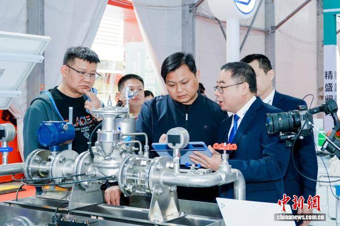 2月19日,客商在福建南安举行的泵阀消防器材展洽谈合作。南安市融媒体中心供图
